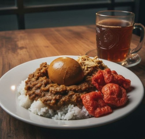 Sesampainya di Gudeg Yu Mrengut yang tak pernah tersenyum itu aroma gurih nangka muda yang dimasak berjam-jam dan gurihnya areh langsung menyambut indra penciuman. Di depan kami tersaji sepiring nasi gudeg dengan telur bulat yang cokelat sempurna, ayam suwir, dan krecek yang wungkul-wungkul—utuh, kenyal, dan menggoda. Sambil menyendok krecek yang pedasnya meresap itu, saya mencoba membuka percakapan yang sedari tadi mengganjal di kepala, sebuah keresahan tentang arah ekonomi kita.