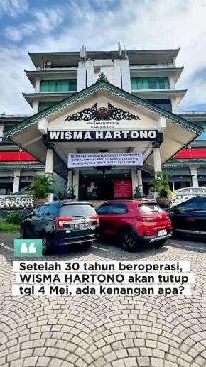 Namun kini, kabar tutupnya Wisma Hartono menyita perhatian masyarakat. Di bagian depan gedung, terbentang spanduk putih bertuliskan hitam yang mengabarkan secara resmi akhir operasional tempat tersebut.